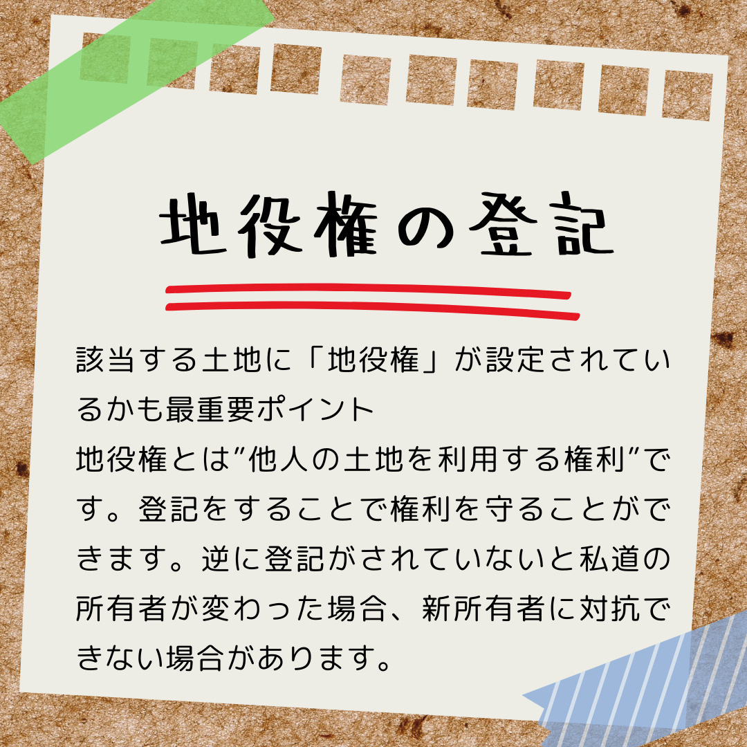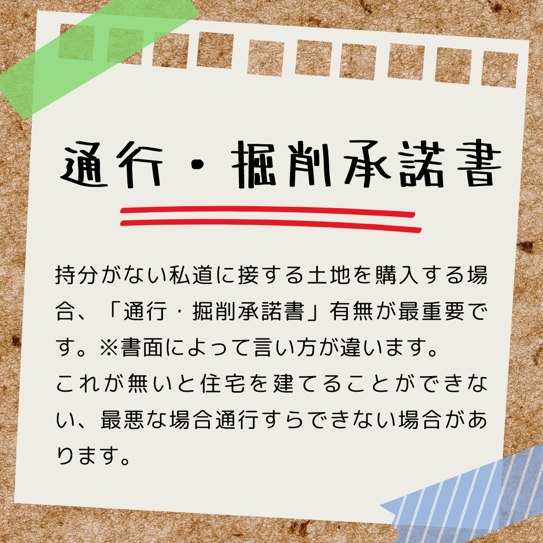 もちろん手を出してはいけない私道もありますが、事前の確認がしっかりできていれば検討してもよい土地がでてきます。