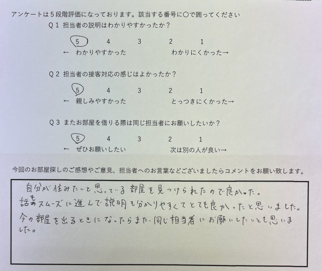 今の部屋を出る時になったらまた同じ担当者にお願いしたいと思いました。